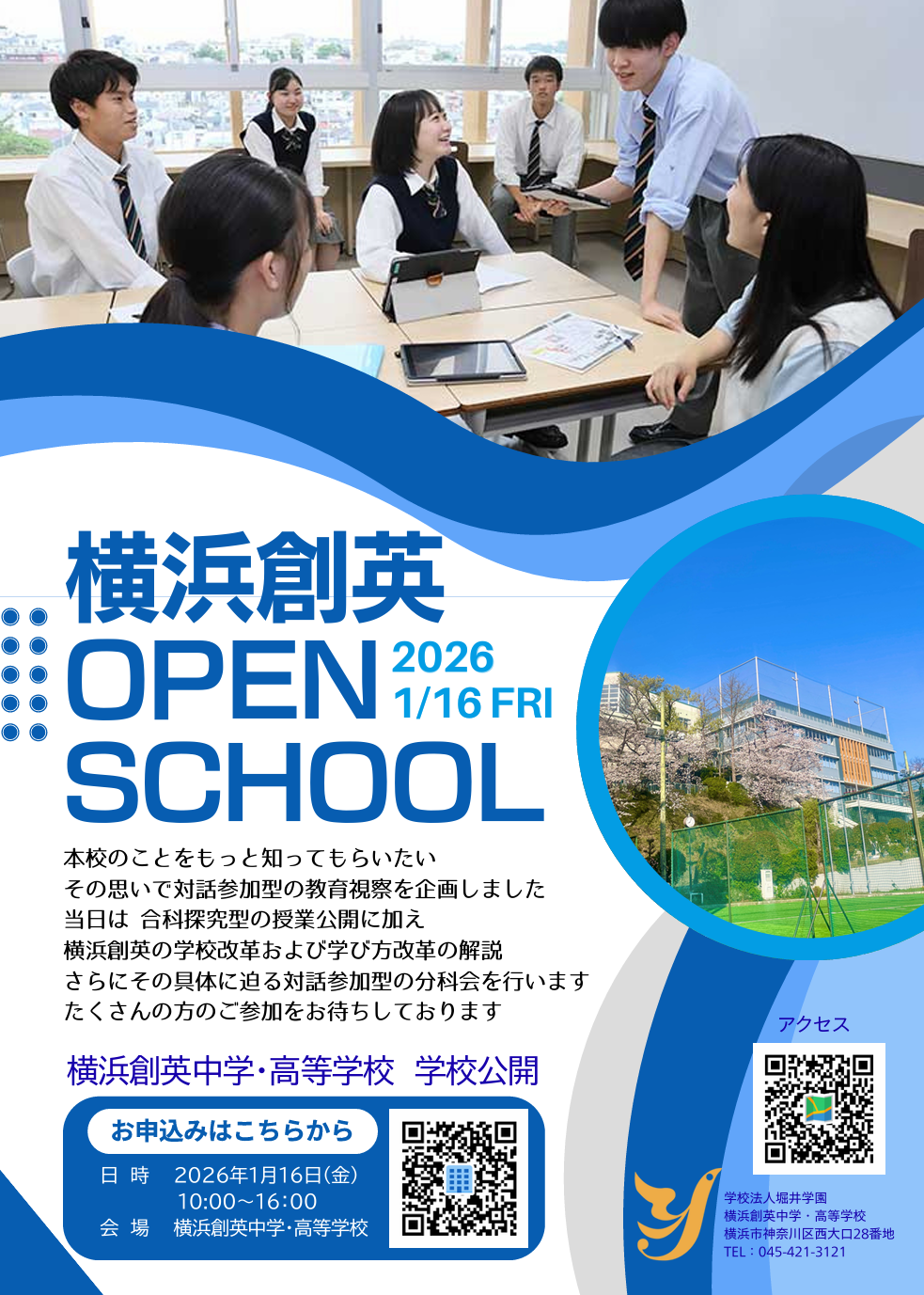 学校法人堀井学園 横浜創英中学・高等学校 〒221-0004 神奈川県横浜市神奈川区西大口28番地 TEL:045-421-3121 FAX:045-421-3125